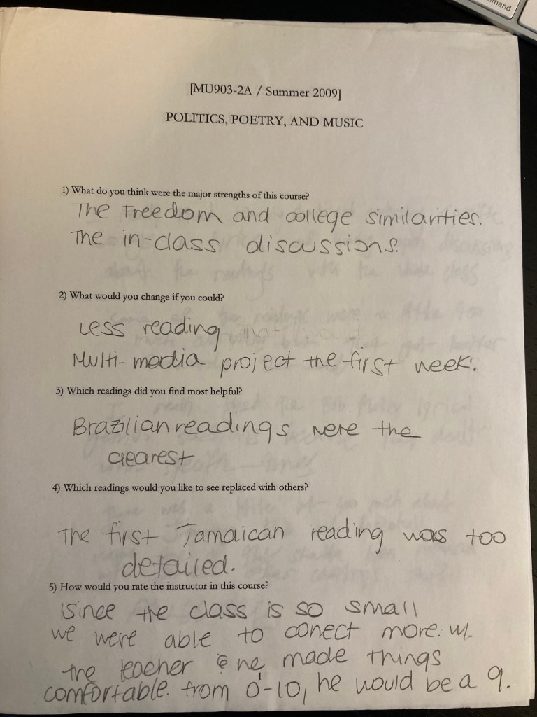 As a college-level seminar designed with younger learners in mind, Politics, Poetry & Music reflects my approach to teaching across secondary and post-secondary contexts. In this course, students explore the social and political power of music through hands-on projects, lyrical analysis, and global case studies. They examine how music shapes identity and drives change, drawing on interdisciplinary methods from history, literature, and social science. The course models the kind of active, inclusive, and comparative learning I bring to the classroom, and shows how music and media can foster critical thinking, cultural awareness, and student voice.